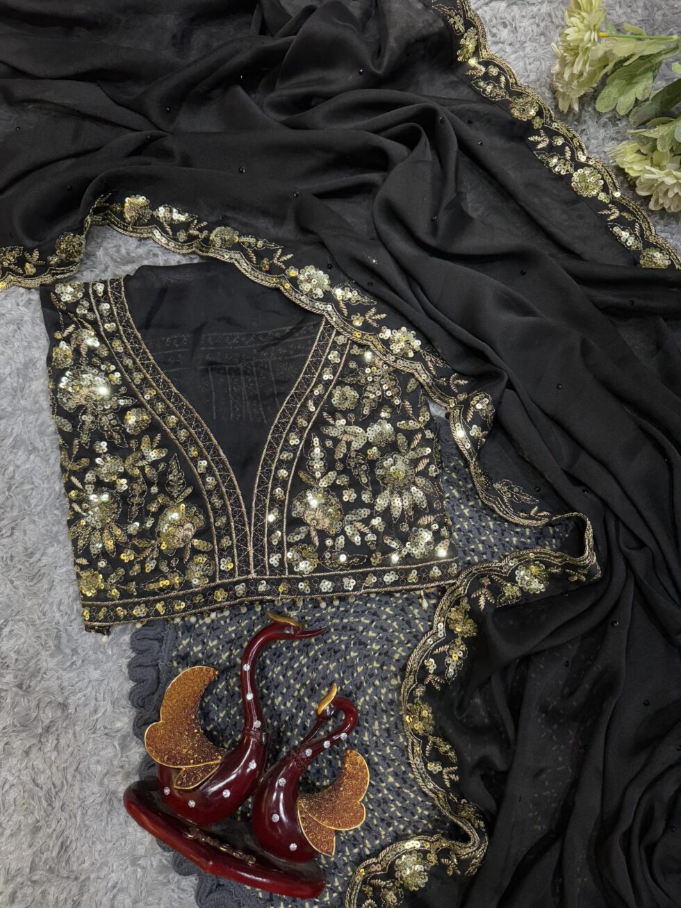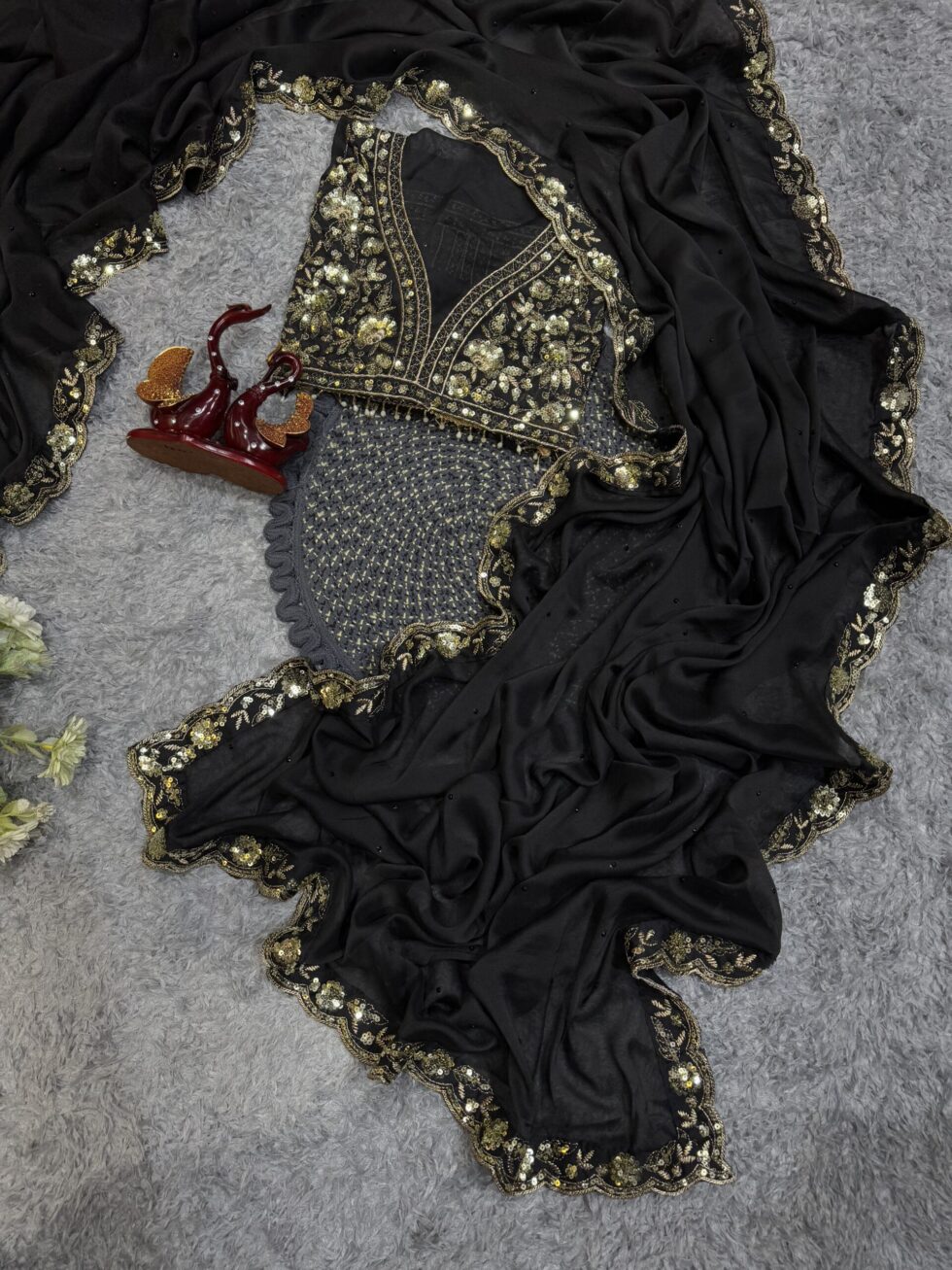 Elevate your style with Nice Creation’s NC 5415 saree. Soft Rangoli silk, hand-diamond work, and exquisite sequins embroidery make this showroom-quality piece perfect for any celebration.